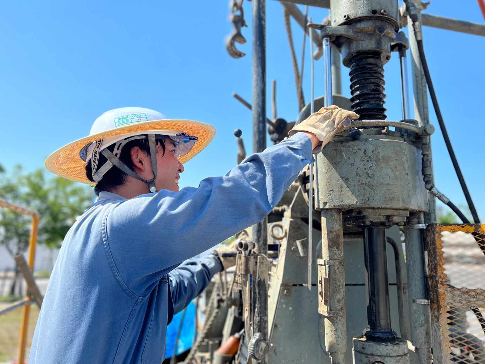 田村ボーリング施工班は、精度の高い地盤情報をもたらす高品質ボーリング、自社保有の原位置試験器による試験、水深17mまで対応可能なスパット台船による海上ボーリング等、高度なボーリング技術で目的を達成しています。そして、何よりも安全を最優先とし、独自の安全衛生管理運用マニュアルを策定して作業をおこなっています。
