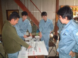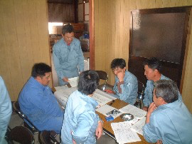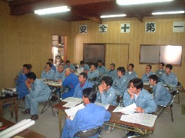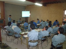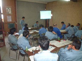 勉強会には調査課・工務課のほぼ全員が揃い、社長他の役員も出席して畑田機材センター管理棟で開催されました。