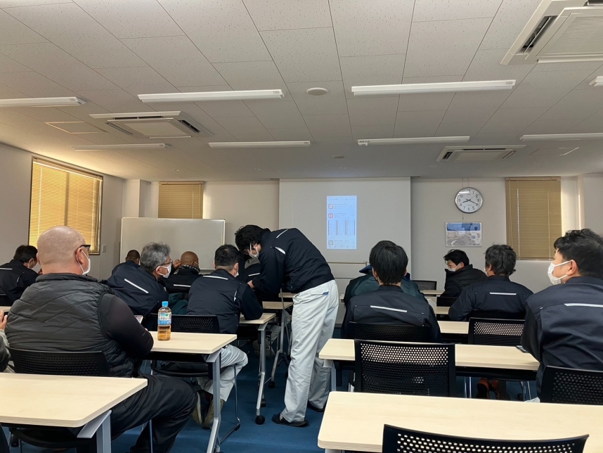 発表内容は、ボーリングとは直接関係しない液状化判定に関連した14C年代測定についてや珪藻類による環境検討基礎研究、海上櫓でのボーリングや曳航探査、水中ドローンを利用したケーブル点検といった、田村ボーリングが得意とする海上作業の内容、ボーリングコアを試験するための補助具の開発や業務を実施するまでの申請内容の検討といった、業務を補助する内容、そして、土壌汚染に対応する現場作業や地歴調査の精度を向上するための情報収集とその整理という土壌汚染関係に関する発表、さらには技術の使いどころを考察して、顧客と社会に還元すべき姿勢を示した発表がありました。