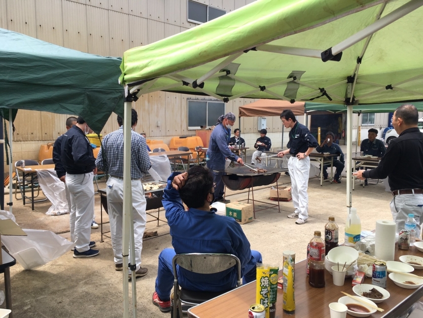 安全衛生大会の後は、畑田機材センターに移動し、みんなで懇親バーベキューをおこないました。