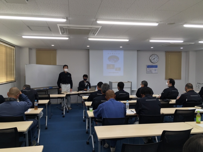 最近2年はコロナウィルスの蔓延により、資料を配付するのみの開催となっていましたが、今年度は社員全員が集まっての安全衛生大会を実施することができました。