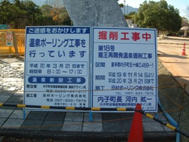内子町「龍王再開発温泉掘削工事」の起工式が挙行されました。 2007年12月03日(月) 内子町(愛媛県)より、龍王再開発に伴い発注された新泉源の掘削工事の起工式が、河内町長、山田町議会議長、小川龍王再開発検討委員会長、他町関係者並びに地元関係者はじめ多数のご列席の下、現地で挙行されました。 なお、起工式の模様はテレビ愛媛およびケーブルテレビなどのニュース番組で報道されました。 当社は掘削地点の適地調査段階から参画し、調査にはCSA-MT電磁探査、ガンマー線スペクトル探査、VLF電磁探査等の最新技術を駆使しました。町関係者の大きな期待の下、本格的な掘削工事が始まります。