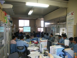 恒例となった社内勉強会は、技術部の企画で、社員相互の技術力研鑽や技巧的な伝承等を目的に開催しています。今回の社内勉強会は機材センター事務所で開催しました。