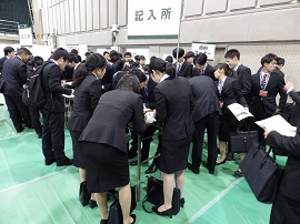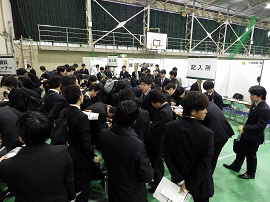 このイベントは、同校の就職希望学生と求人企業との最初の接点となるもので、今回の参加企業は県内外から「午前の部」・「午後の部」に分かれ156社が参加しました。