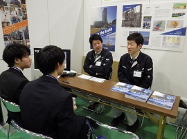 当社のブースを訪問下さった学生の皆さん、最初はやや緊張の面持ちでしたが、次第に打ち解けて遣り取りされていました。