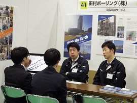 当社の担当者からは、仕事の概要、地質調査は何のためにするのか、どのような事をして、どのような報告をしていくのか説明。成果品となる報告書の作成過程で「三次元解析」等といった最新技術を取り入れている他、新しいことにはどんどんチャレンジできる社風があることを伝えました。さらに会社が仕事に必要な資格の取得を奨励しており、手厚い資格手当がある等、当社の特色をアピールしました。