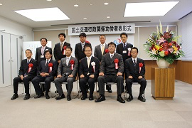 表彰式は、国土交通省四国地方整備局土佐国道事務所で行われ、福本充所長より表彰状が授与されました。表彰式に弊社からは社長、主任技術者、技術顧問、当該業務の担当技術者および営業担当者の5名が出席しました。