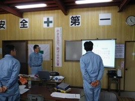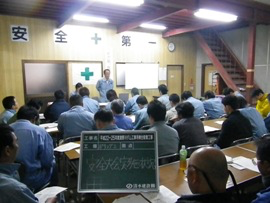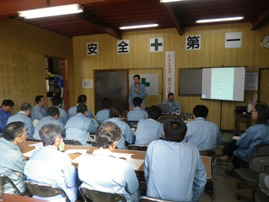 社内技術発表会の開催は、第9回を迎えます。今年は、当社の畑田機材センターで行い、技術部内連絡会・安全協議会を同時開催しました。調査課、工務課の各技術部員が、昨年度1年間の業務の中で、直面した問題や、初めて体験した事象などを発表し、社内の共有財産とする目的があります。