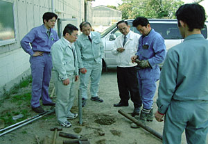 土壌サンプリングのデモンストレーション実施。 2003年04月15日(火) 土壌汚染調査のための土壌サンプリングのデモンストレーションを、香川県環境管理課等の担当職員を招いて、当社の畑田機材センターで行いました。 会場:当社の「畑田機材センター」にて 参加者/香川県環境森林部環境管理課・香川県保健環境研究センター